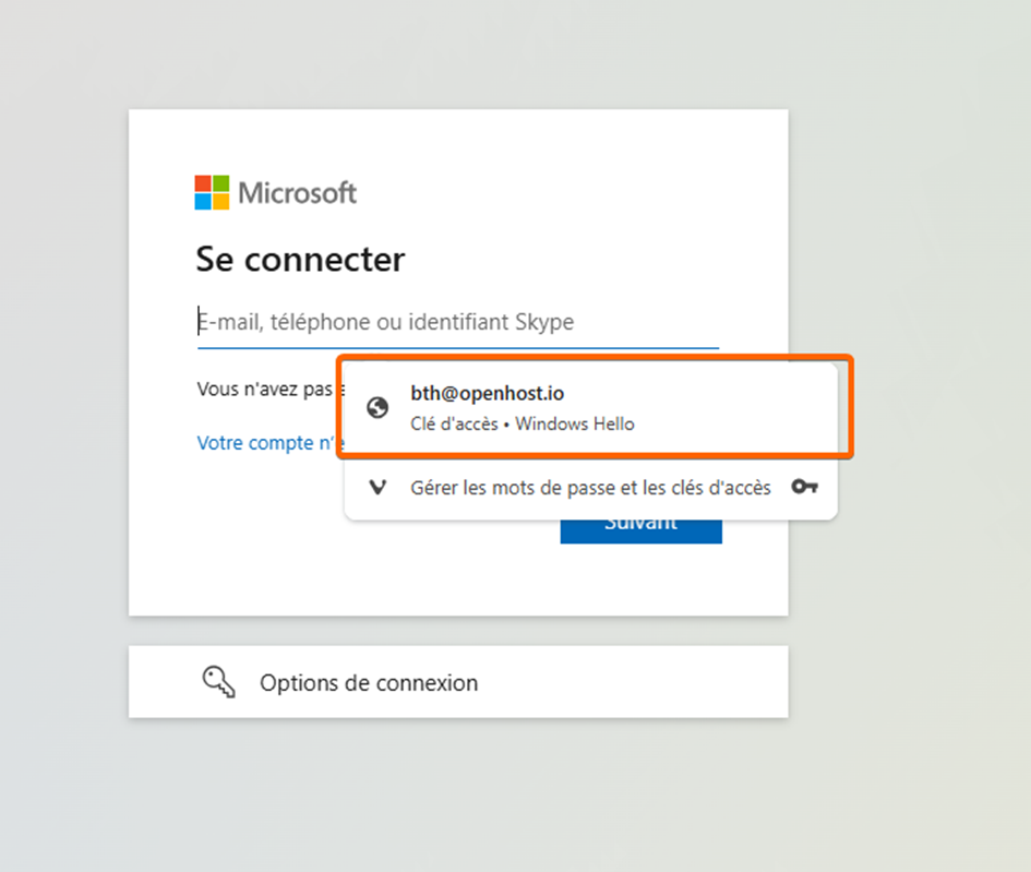 💡À savoir : Windows Hello est lié au poste, il n’est pas utilisable tel quel depuis un ordinateur personnel.